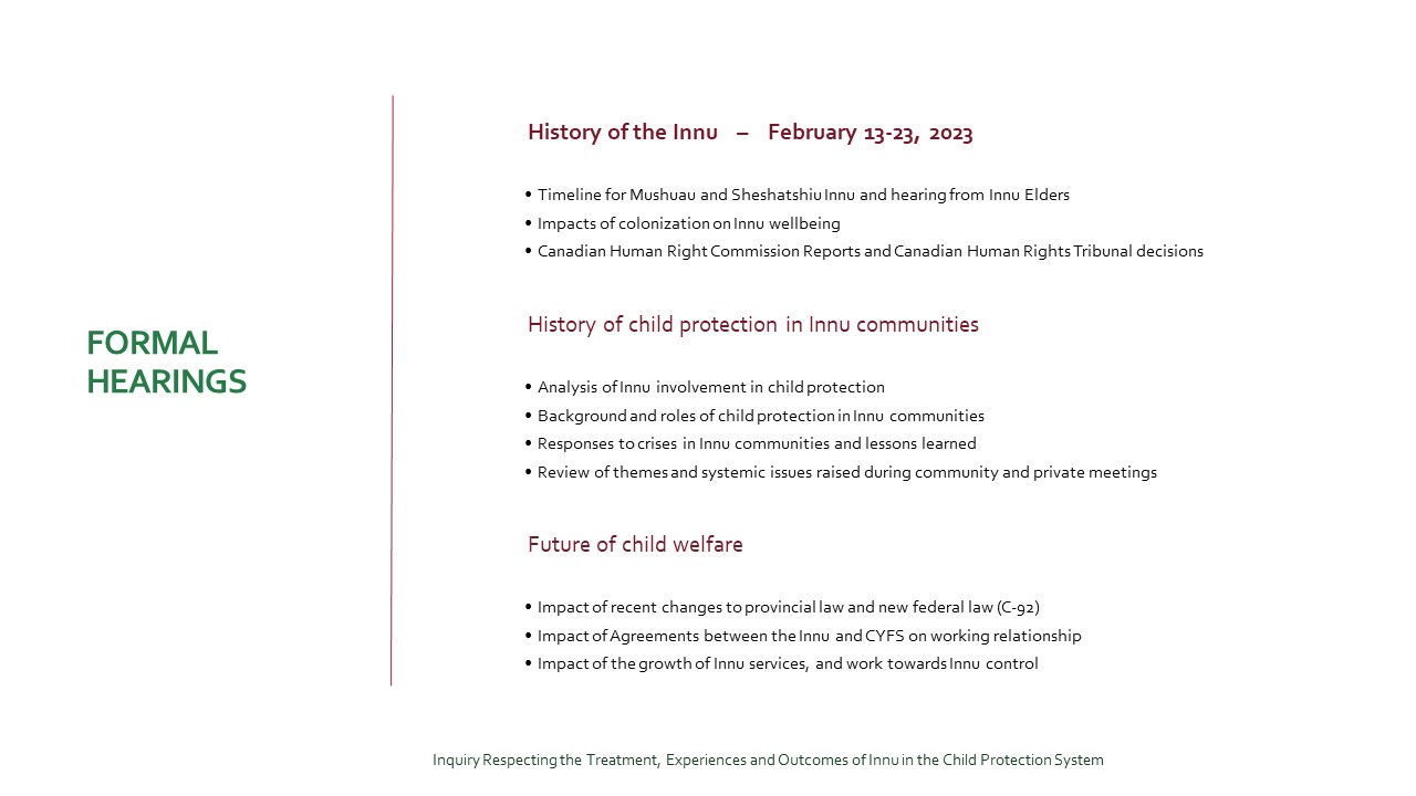 Inquiry Respecting the Treatment, Experiences and Outcomes of Innu in the Child Protection System